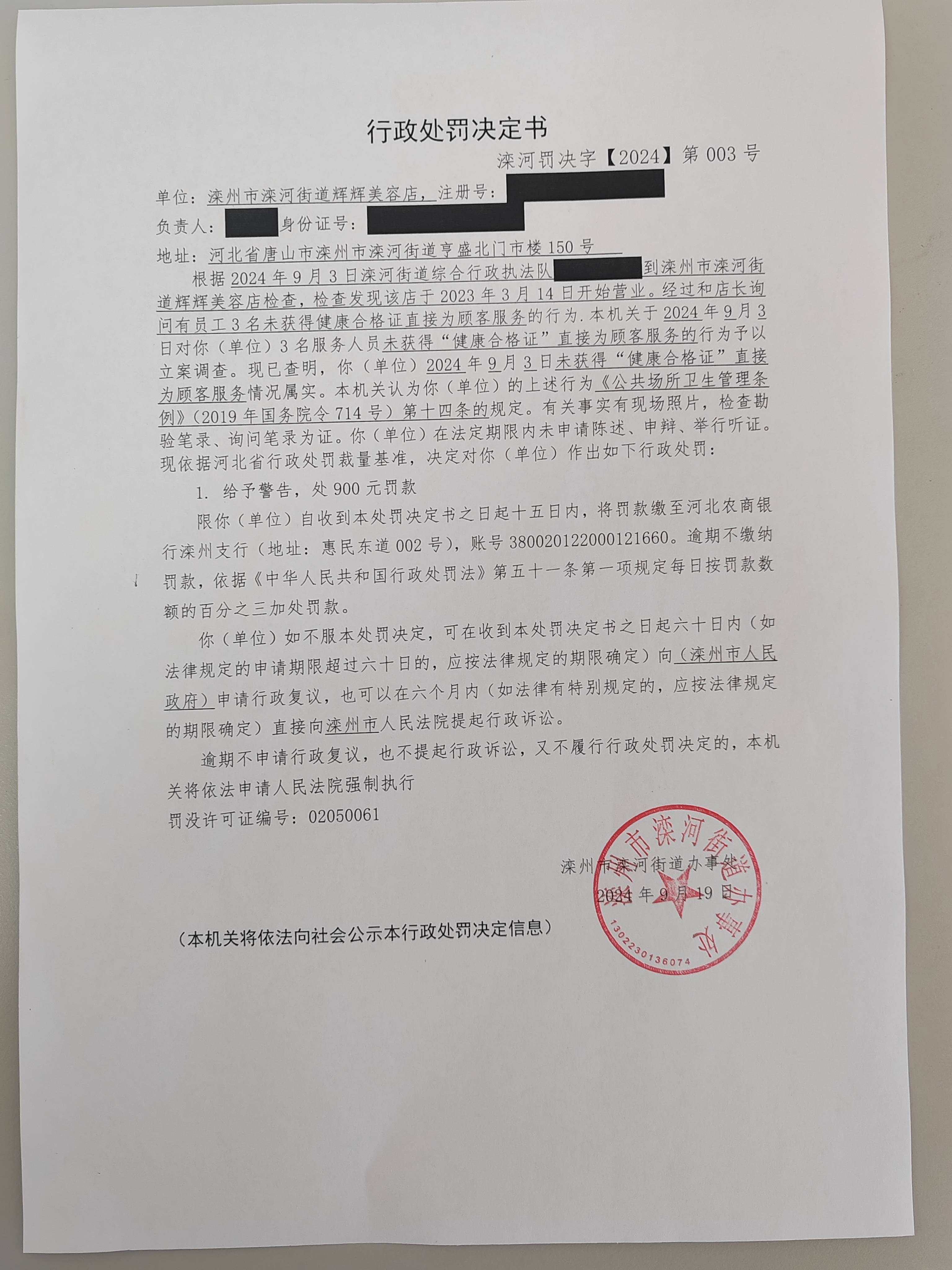 行政处罚决定书